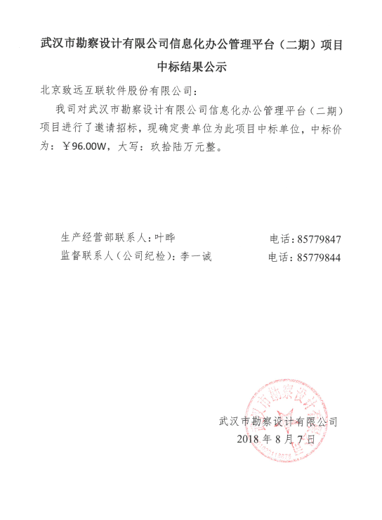 武漢市勘察設計有限公司信息化辦公管理平臺(二期)項目中標結果公示