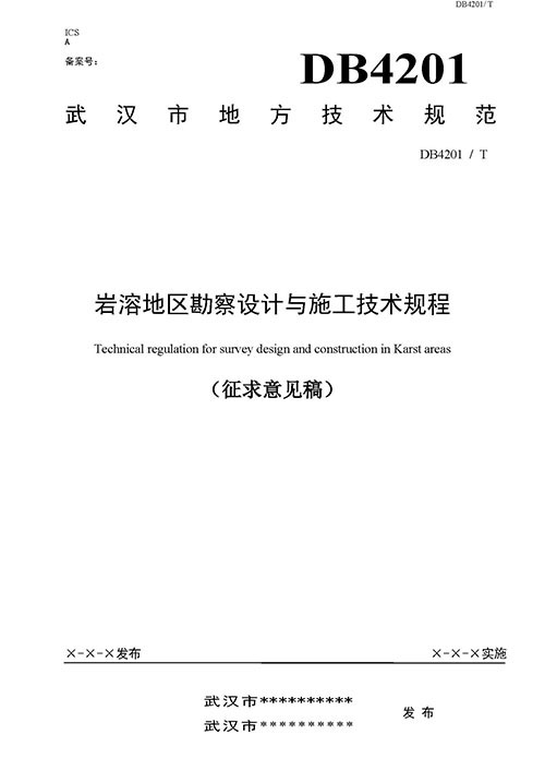 根據(jù)《市質(zhì)監(jiān)局關(guān)于下達(dá)2018年度武漢市地方標(biāo)準(zhǔn)制修訂項目計劃的通知綜合管理類(第二批)》(武質(zhì)技監(jiān)標(biāo)[2018]5號)的要求,由武漢市勘察設(shè)計有限公司聯(lián)合相關(guān)單位共同起草的武漢市地方標(biāo)準(zhǔn)《巖溶區(qū)勘察設(shè)計與施工技術(shù)規(guī)程》(附件1)已完成征求意見稿。按照有關(guān)規(guī)定,現(xiàn)征求貴單位意見。請將意見填入對應(yīng)《征求意見反饋表》(附件2)并加蓋單位公章后,紙質(zhì)版(或掃描件)于2019年07月20日前反饋給武漢市勘察設(shè)計有限公司,逾期不復(fù)函,視為無意見。