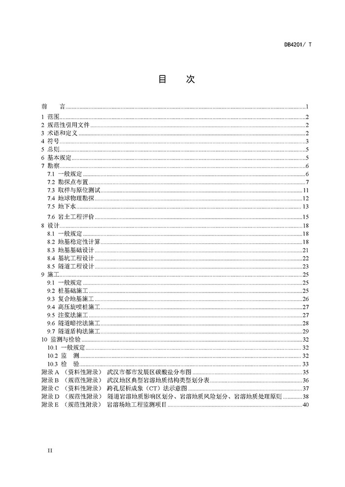 本規(guī)程規(guī)定了武漢市巖溶地區(qū)勘察、地基基礎(chǔ)設(shè)計與施工、監(jiān)測與檢驗的基本技術(shù)要求。 本規(guī)程適用于武漢市巖溶地區(qū)建(構(gòu))筑物、市政橋梁工程和城市軌道交通工程的勘察、地基基礎(chǔ)