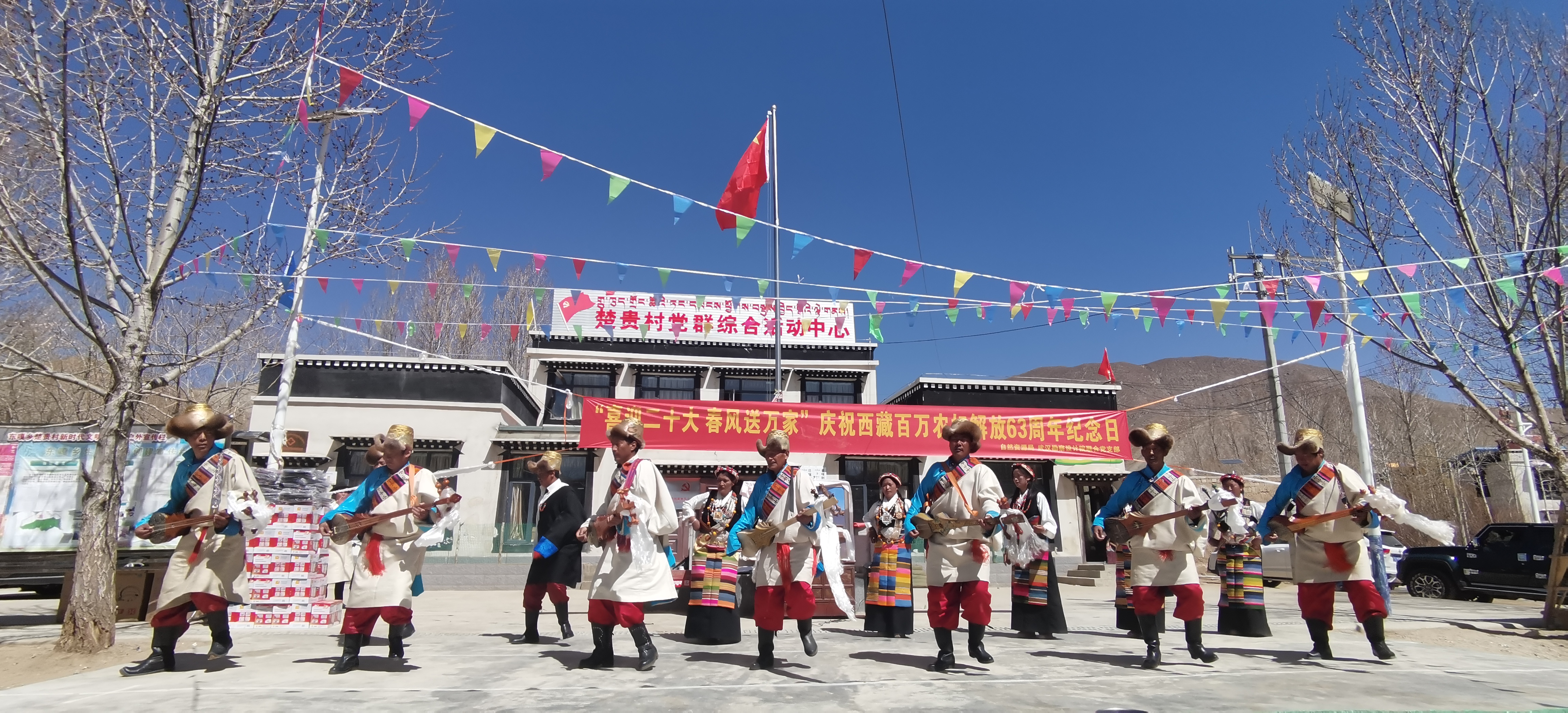 為慶祝西藏百萬(wàn)農(nóng)奴解放63周年,充分展現(xiàn)西藏民主改革以來社會(huì)經(jīng)濟(jì)發(fā)展取得的突出成就,3月27日上午,項(xiàng)目黨員突擊隊(duì)參與了桑珠孜區(qū)自然資源局、東嘎鄉(xiāng)楚貴村黨支部及駐村工作隊(duì)聯(lián)合開展“建設(shè)美麗幸福西藏,共圓偉大復(fù)興夢(mèng)想——紀(jì)念西藏百萬(wàn)農(nóng)奴解放63周年”聯(lián)合主題黨日活動(dòng)。