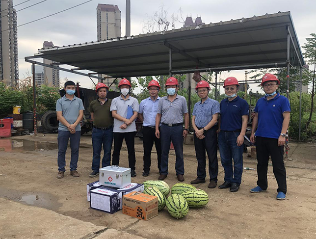 8月11日至12日,公司領(lǐng)導(dǎo)帶班開展安全生產(chǎn)大檢查暨夏日送清涼活動,深入項目現(xiàn)場,給一線作業(yè)人員送來夏日清涼的同時要求現(xiàn)場做好安全隱患排查治理工作,把生命健康放在首要位。