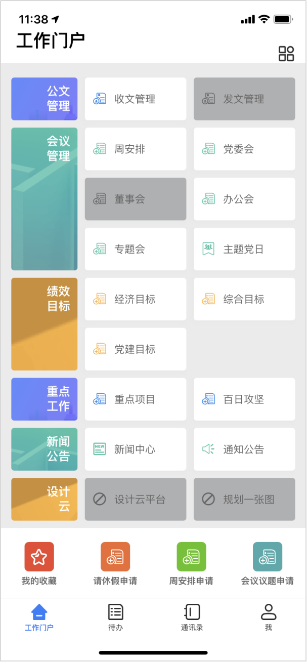 目前,該平臺成功上線了收文管理、會議管理、績效目標(biāo)、重點工作、考勤管理和車輛管理功能板塊。在勘察公司信息與創(chuàng)研中心項目組成員的努力下,搭建了流轉(zhuǎn)高效、精準(zhǔn)督辦的公文體系,大幅度提升了集團(tuán)公文辦理效率;實現(xiàn)了會議管理、績效目標(biāo)、重點工作等數(shù)據(jù)查看方便、跟進(jìn)有序;完成了集團(tuán)管理權(quán)限范圍內(nèi)人員請銷假和用車的網(wǎng)上申報、網(wǎng)上審批和網(wǎng)上歸檔。