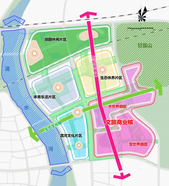 項目規(guī)劃用地約1.1萬畝,打造“一核兩軸四片區(qū)”的空間格局:項目“一核”圍繞湖面,布局多元文旅業(yè)態(tài),其中包括約9萬方的全球最大冰雪娛樂綜合體,約2萬方的水娛樂綜合體,約30萬方的酒店康養(yǎng)民宿群以及集萃黃陂人文的特色水鎮(zhèn)商街;“兩軸”將建設(shè)文旅發(fā)展軸和生態(tài)文化軸;“四片區(qū)”即以水系為主線,形成濱河文化、體育樂活、田園休閑、生態(tài)休養(yǎng)四大片區(qū),為游客提供全天候、全季節(jié)、全齡段、全業(yè)態(tài)的文化旅游服務(wù)。
