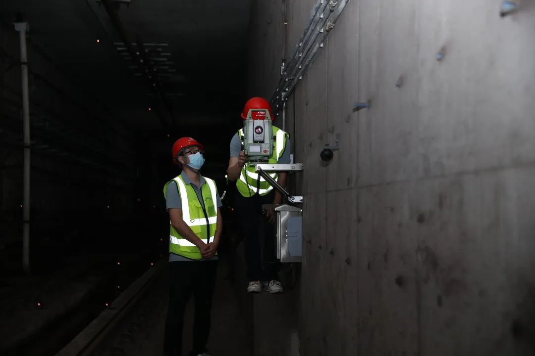 為保證6號線的安全運營,及時了解地鐵線路周邊項目施工引起的隧道結(jié)構(gòu)變形情況,待到凌晨地鐵停運后,項目部人員連續(xù)奮戰(zhàn)了數(shù)十個夜晚,將自動化監(jiān)測儀器設備安裝到地鐵隧道中,確保地下的平穩(wěn)如常。