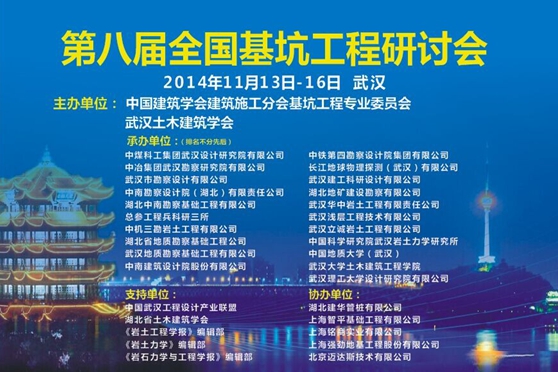 2014年11月14日,第八屆全國基坑工程研討會在武漢市洪山賓館隆重召開。此研討會每兩年舉辦一次,是國內(nèi)基坑工程技術(shù)專業(yè)的頂級交流活動。本次大會共有來自全國各地的行業(yè)精英700余人參加,并邀請到龔曉南、劉祖德、范士凱、顧金才、黃強、唐雨耕、宋二祥、鄭剛、王衛(wèi)東、徐武建、彭浩、張曠成等工程院院士、全國頂尖大師、知名學(xué)者及重要領(lǐng)導(dǎo)作為與會嘉賓,大家齊聚一堂,共襄盛會。