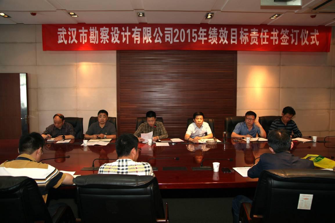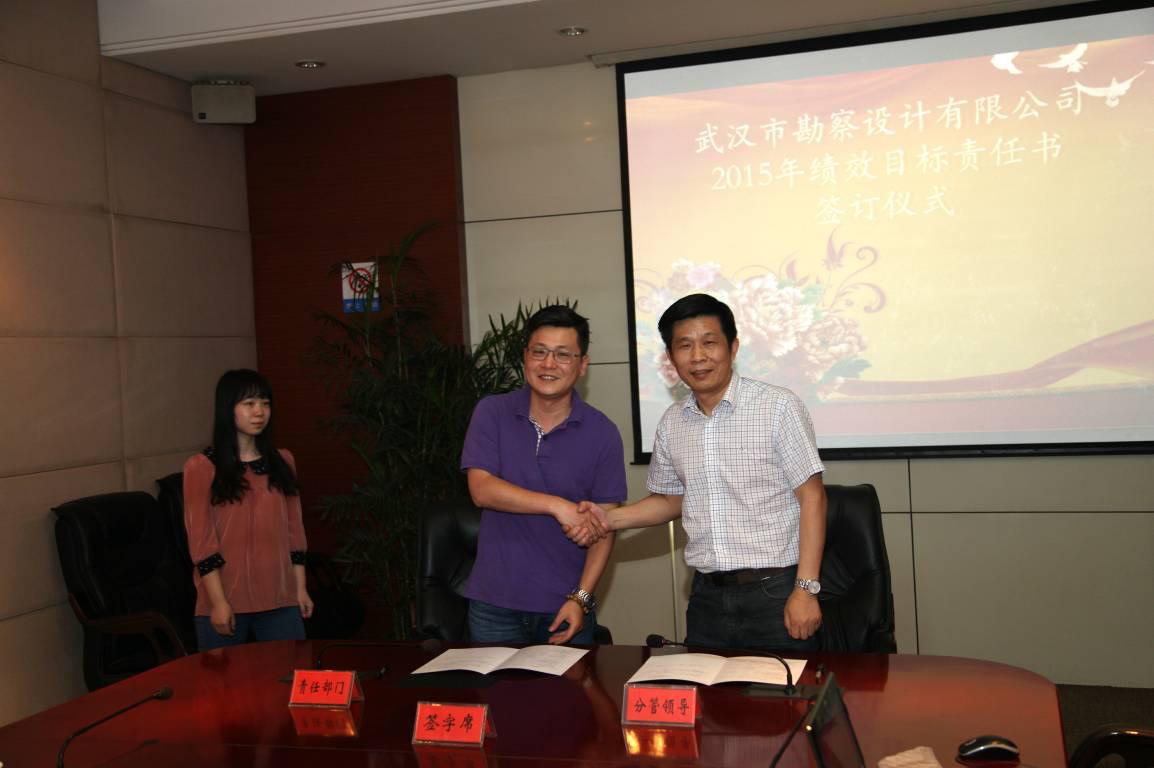 2015年5月14日,公司績效目標領導小組組織召開了隆重的“勘察公司2015年績效目標責任書簽訂儀式”。公司高層管理人員分別與各分管部門負責人簽訂了部門績效目標責任書,為勘察公司年度績效目標的完成攜手努力,共同推動公司各項生產及管理工作高效有序開展,為客戶提供優(yōu)質可靠的服務,提升公司品牌影響力和行業(yè)地位。通過年度績效目標任務的落實,逐步實現(xiàn)勘察公司中長期發(fā)展戰(zhàn)略目標。