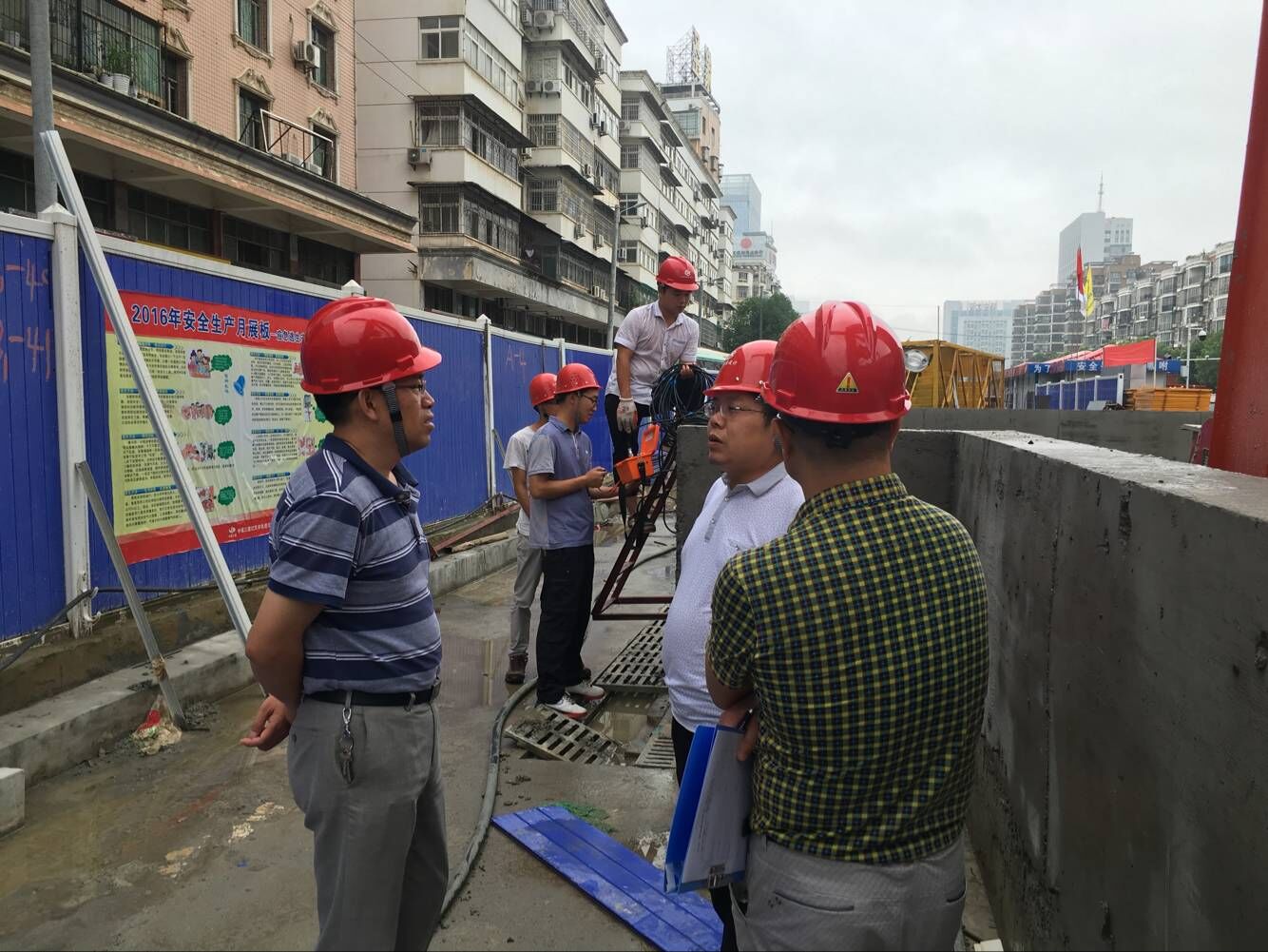 近期武漢地區(qū)連降暴雨,城區(qū)多處漬水嚴(yán)重,給我公司外業(yè)工地安全生產(chǎn)文明施工帶來(lái)極大不利影響,安全隱患陡增。公司領(lǐng)導(dǎo)高度重視,董事長(zhǎng)廖建生親自部署,要求各生產(chǎn)部門對(duì)在建工地進(jìn)行仔細(xì)排查,消除安全隱患,并要求綜合部、安全生產(chǎn)部隨時(shí)待命作好后勤保障工作。7月5日上午,公司副總經(jīng)理、總工官善友親自帶隊(duì),率領(lǐng)安全生產(chǎn)部、技術(shù)質(zhì)量部前往江夏地鐵27號(hào)線北華街站基坑監(jiān)測(cè)工地、漢口火車站優(yōu)撫醫(yī)院基坑工地、長(zhǎng)豐大道勘察工地檢查工作。每到一處,官總都要詳細(xì)詢問(wèn)工程進(jìn)展情況、項(xiàng)目存在的問(wèn)題,安全生產(chǎn)文明施工措施落實(shí)情況,為現(xiàn)場(chǎng)項(xiàng)目組出謀現(xiàn)策。官總對(duì)各在建工地安全文明施工及規(guī)范管理予以了肯定,同時(shí)督促在建項(xiàng)目負(fù)責(zé)人要時(shí)刻不放松地抓好工程質(zhì)量與安全管理,認(rèn)真落實(shí)安全生產(chǎn)責(zé)任制,面對(duì)惡劣天氣要認(rèn)真貫徹值班制度,加強(qiáng)安全巡查,及時(shí)發(fā)現(xiàn)和消除安全隱患,同時(shí)要求各工地項(xiàng)目負(fù)責(zé)人切實(shí)做好施工安全防護(hù)及施工人員安全教育培訓(xùn)工作,提高安全意識(shí),確保安全生產(chǎn)“零事故”。(安全生產(chǎn)部)