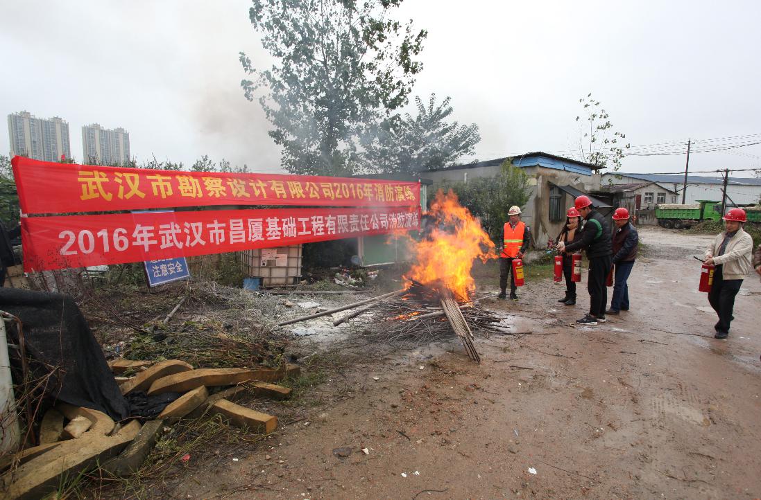 為了全面提高我公司員工的火災應急處理能力,增強消防意識,普及消防知識及消防技能, 在公司副總經理、總工官善友的部署下,2016年10月31日上午9點,勘察公司(及昌廈基礎公司)聯合武漢市測繪研究院,在我公司漢陽基地舉行了專門的的消防滅火演練。演練由市測繪研究院事務保障部張建輝書記任總指揮、勘察公司安全生產部孫衛(wèi)林主任任副總指揮。張書記就企業(yè)存在的消防安全隱患及如何應對突發(fā)火災險情進行了深入淺出的講解,并繪聲繪色地演示了干粉滅火器的使用方法。參加演練的員工按著張書記的講解,在孫主任的帶領下井井有條地進行了模擬火場滅火。數次成功的滅火表明員工已經基本掌握了滅火器的使用方法。