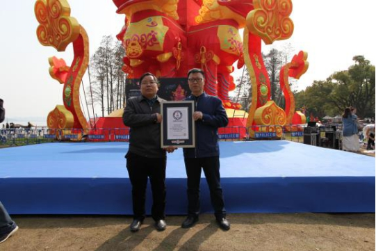 當(dāng)天,武漢市勘察設(shè)計有限公司副總經(jīng)理安永強(qiáng)將專業(yè)報告交吉尼斯世界紀(jì)錄認(rèn)證官,認(rèn)證官現(xiàn)場進(jìn)入燈組檢查制作工藝,最終認(rèn)證“雄獅賀歲”挑戰(zhàn)成功,成功刷新2012年東湖燈會的最高燈組21.15米的紀(jì)錄,并現(xiàn)場頒發(fā)了認(rèn)證書。( 檢測監(jiān)測公司供稿)