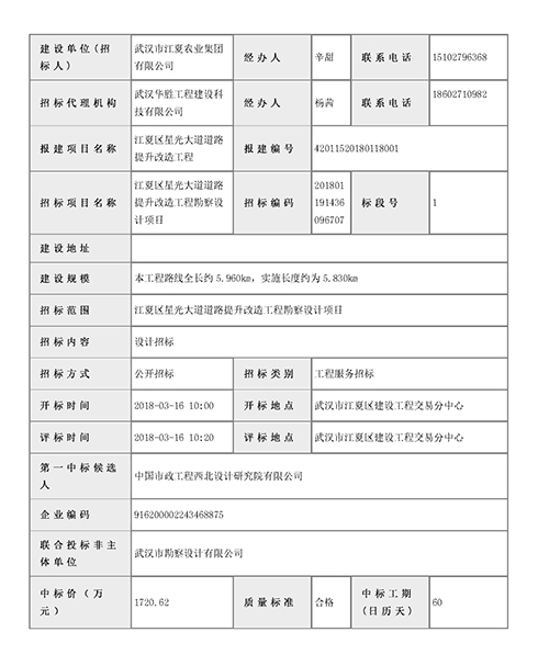 江夏區(qū)星光大道道路提升改造工程勘察設(shè)計(jì)項(xiàng)目中標(biāo)簡(jiǎn)訊