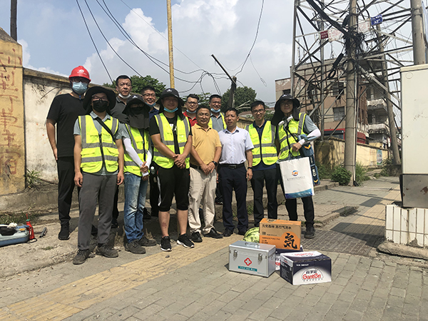 8月11日上午,公司黨總支副書(shū)記戚輝、代理副總經(jīng)理熊劍率綜合部、技術(shù)質(zhì)量安全部、巖土工程二公司、測(cè)繪工程公司、昌廈公司主要負(fù)責(zé)人,先后來(lái)到友誼大道快速化改造工程二標(biāo)段(宏茂巷—三環(huán)線)勘察項(xiàng)目、青山白玉路地形管線測(cè)量項(xiàng)目、保利云尚基坑工程項(xiàng)目施工現(xiàn)場(chǎng),看望慰問(wèn)正在烈日下工作的一線員工,詳細(xì)了解項(xiàng)目進(jìn)展情況,詢問(wèn)他們?cè)谑┕どa(chǎn)、生活等方面遇到的困難和問(wèn)題,代表公司對(duì)一線員工高溫下堅(jiān)守崗位、辛勞工作的精神表示感謝,并送上了防暑降溫物品,叮囑員工在當(dāng)前持續(xù)高溫的不利條件下,安全做好工作的同時(shí),注意休息,勞逸結(jié)合,采取有效的防暑措施,安全順利地度過(guò)高溫季節(jié),保質(zhì)保量的完成工作。
